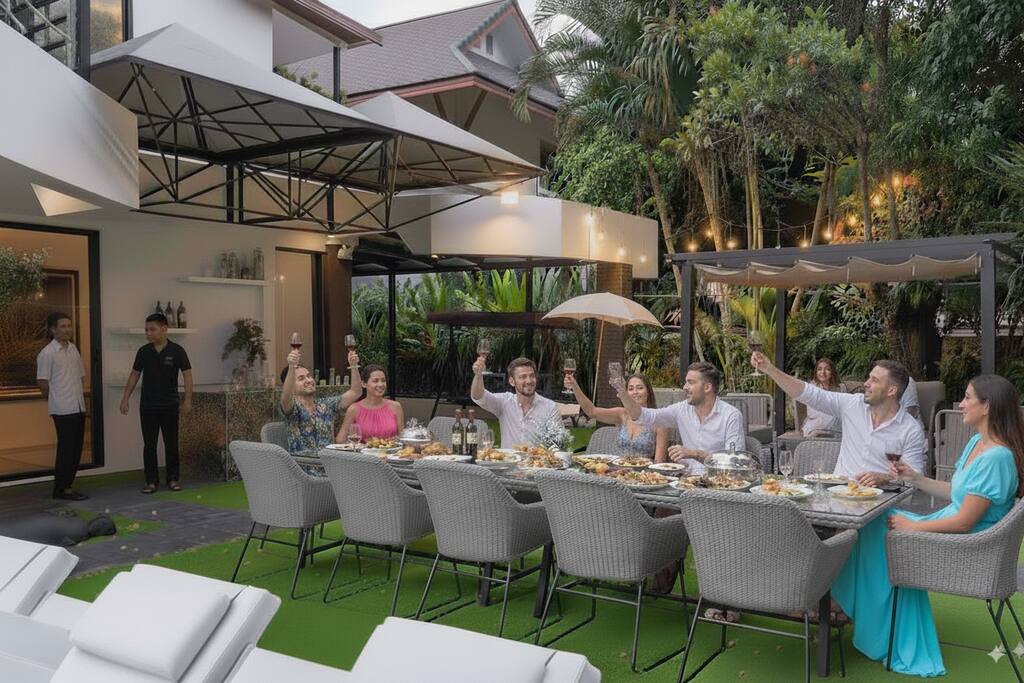 Welcome to to the BLUE BIRD PALACE, part of The CM Villas collection. A modern 8-bedroom villa, ideal for families, groups, and retreats. This private holiday home is surrounded by lush tropical gardens and features a private pool, spacious indoor/outdoor living areas, a fully equipped kitchen, and elegant lounges. Daily housekeeping is included for your convenience. The villa comfortably accommodates up to 16 guests, with additional folding beds available for extra fee to host up to 23 people.