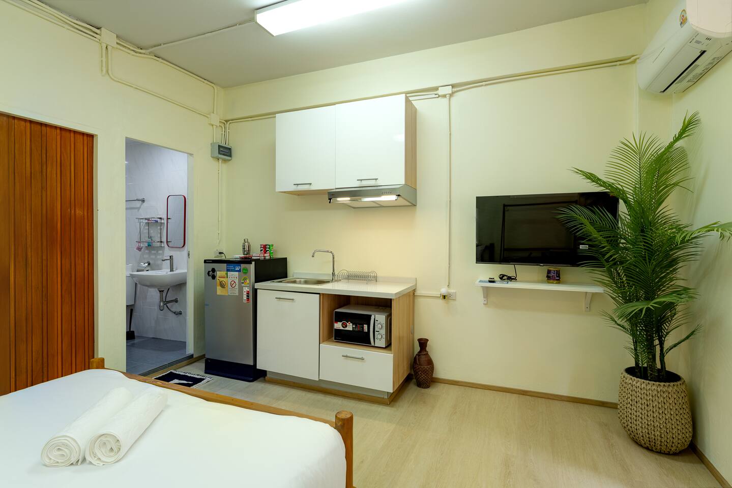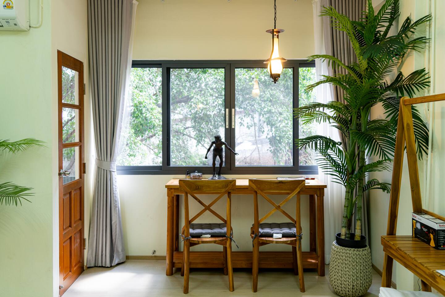 The Space: Your Private Boutique Hotel Experience the perfect balance of group togetherness and personal privacy. Our building is designed as a collection of independent studio suites, allowing everyone to have their own space while enjoying shared social areas. To ensure a relaxing and seamless stay, we provide professional daily housekeeping for all our guests. Socialize & Relax: Common Areas While each suite offers privacy, our spacious shared areas are designed for quality group time: Living Room: A comfortable indoor area for everyone to gather and relax together. Entertainment Hub: Enjoy a friendly game on our Professional Pool Table (Snooker) or have fun with our Karaoke System, Amplifier, and Microphones. Outdoor Terraces & BBQ: Fire up the grill for a cookout or relax in multiple seating areas with a city breeze. Family Friendly: Fully prepared for babies and children with a safe and fun environment. Floor-by-Floor Layout First Floor Bedroom 1: A cozy room featuring 2 comfortable Single Beds and a private balcony. (Note: This is the only room without an internal bathroom/kitchenette). Second Floor Bedroom 2: Studio Suite with King-size Bed, ensuite bathroom, private kitchenette, and sitting area. Bedroom 3: Studio Suite with King-size Bed, ensuite bathroom, private kitchenette, sitting area & small balcony. Third Floor Bedroom 4: Studio Suite with King-size Bed, ensuite bathroom, private kitchenette, sitting area & small balcony. Bedroom 5: Studio Suite with King-size Bed, ensuite bathroom, private kitchenette, sitting area & small balcony. Top Floor (Level 3.5) Bedroom 6: Our most spacious Penthouse Suite with a King-size Bed, ensuite bathroom, and big balcony The Terraces: This level opens up to two expansive private balconies—the ultimate spot for sunset views and group relaxation. Group-Focused Highlights Daily Housekeeping: Professional daily cleaning service included. Prime Location: 3 mins walk to MAYA Mall, 10 mins drive from the Airport. Entertainment: Karaoke system with microphones, Professional Snooker table, and BBQ grill. Family Ready: Fully prepared for babies and children. Flexible Capacity: We can provide additional foldable single beds for extra guests (additional fee applies).