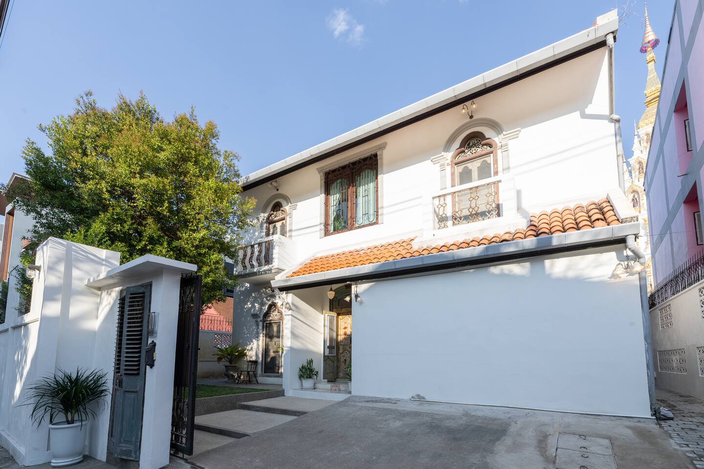 Getting There is Easy! Just tell your driver: "Khoei Chiang Mai - Northern Food restaurant." Once you arrive, look to your right while facing the restaurant you’ll see the villa entrance with a stylish black and brown gate.