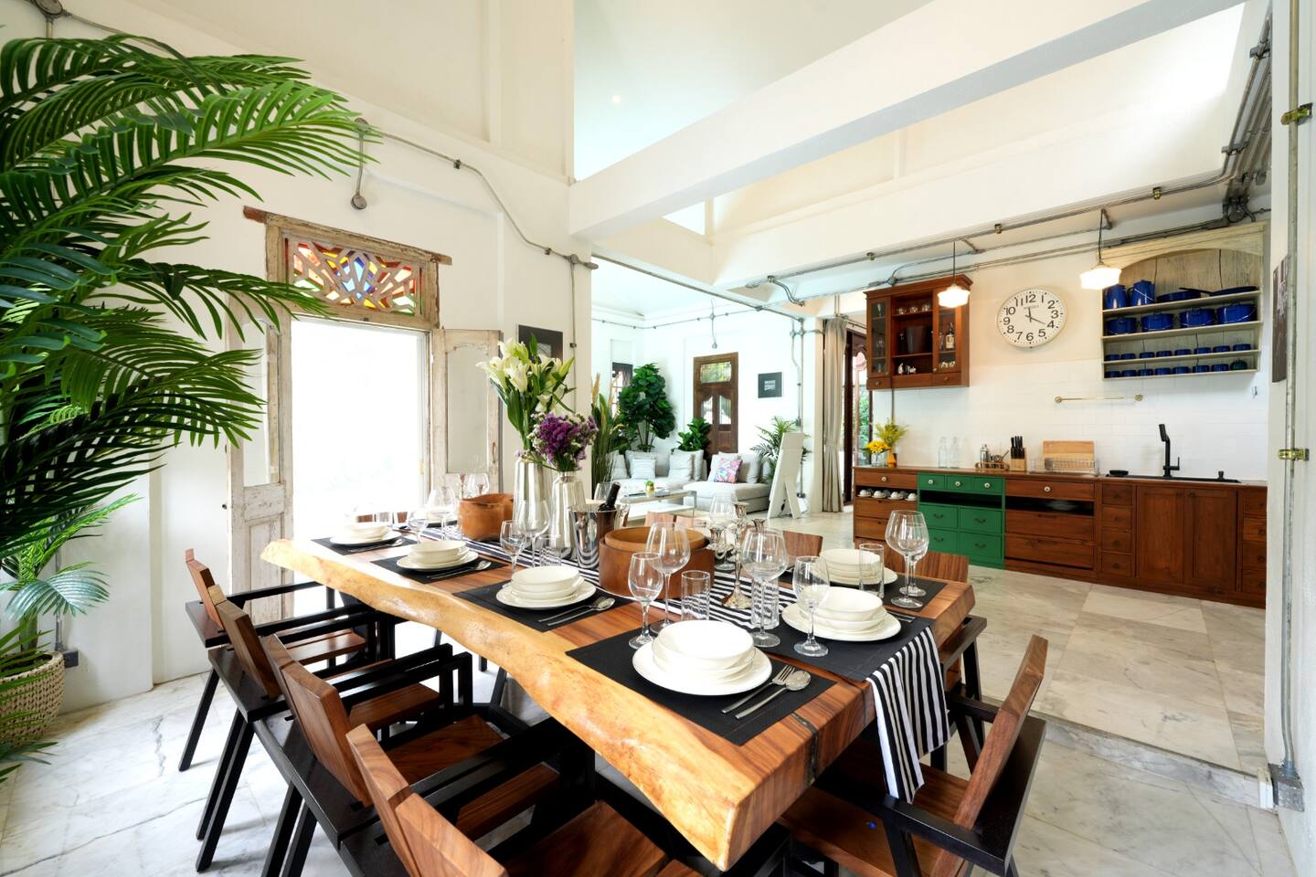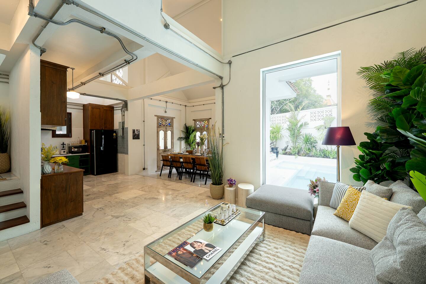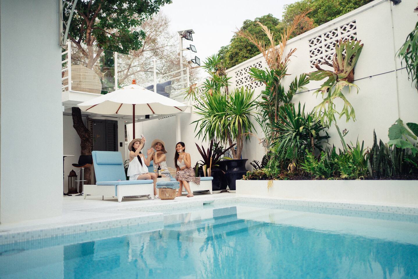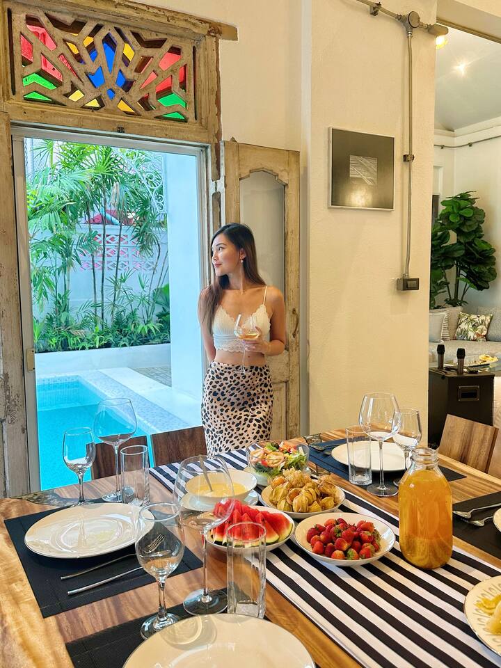 Spacious Retreat: 5 luxurious en-suite bedrooms, 6 modern bathrooms, and generous living areas provide ample space for relaxation and privacy. ★★★INDOOR PARADISE★★★ ★ Spacious Living Room: Gather in the wide and plush living room featuring a 75" Smart TV and Bluetooth speaker. ★Gourmet Gatherings: Fully Equipped Kitchen: Prepare delicious meals with ease in our modern, well-appointed kitchen. ★Large Dining Area: Enjoy memorable feasts together in the spacious dining area. ★Karaoke Nights: Sing your heart out with our dedicated karaoke setup. ★★★OUTDOOR PARADISE★★★ Refreshing Pool: Take a dip in our inviting pool, thoughtfully designed with varying depths for adults and children's enjoyment. Sun-Drenched Patio: Relax and unwind on our comfortable lounge chairs and enjoy the beautiful garden views. Al Fresco Dining: Grill and dine outdoors with our convenient BBQ area and ample seating. Other amenities: → Self check-in → Outdoor shower → Onsite washer + dryer → Dedicated workspace → AC + heating → Smart TV + HQ sound system Family friendly with children’s books, toys, baby sitter recommendations, high chair & travel crib on request. Our well-connected location lets you easily explore vibrant markets, dynamic nightlife & cultural landmarks. Add my listing to your wishlist by clicking the ❤ in the upper-right corner.