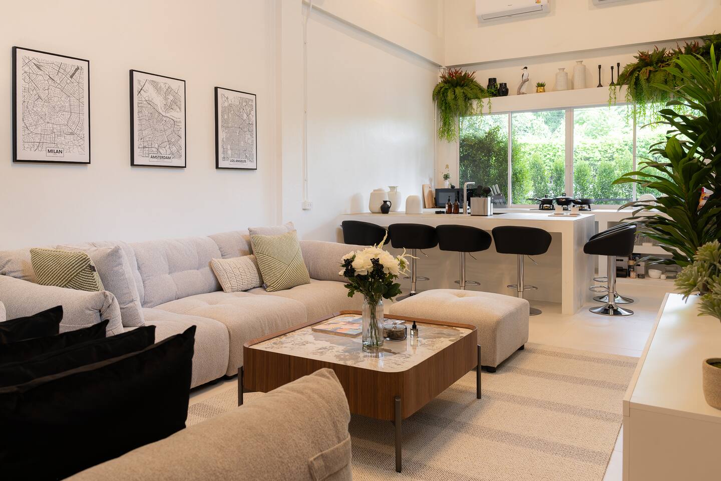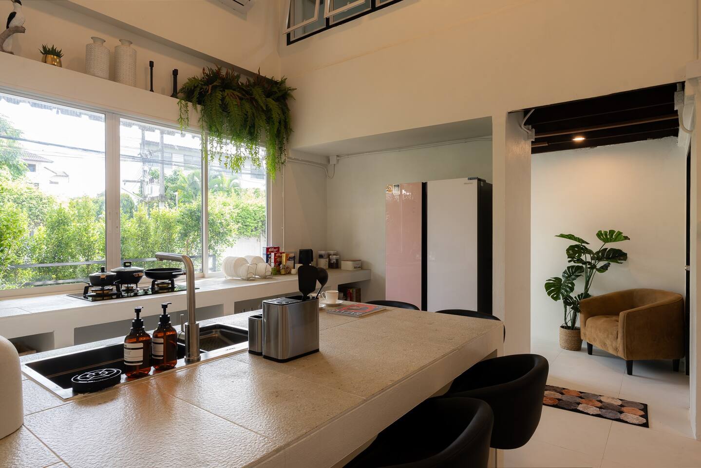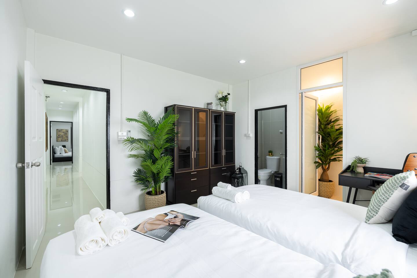 House Facilities and Floor Breakdown: The house has been thoughtfully designed to provide maximum comfort and privacy for all guests, featuring welcoming common areas and expansive rooms. ◆ Ground Floor: The entrance level offers an open, bright, and inviting living space: Spacious & Inviting Living Room: A perfect spot for relaxation, conversations, and shared moments, featuring a 75-inch smart TV and a karaoke system for a complete entertainment experience. Fully Equipped Kitchen: Includes all the necessary appliances and utensils for preparing meals, from morning coffee to gourmet dinners. This kitchen also features a central island that doubles as a dining area. Dedicated Workspace: A quiet and comfortable area for guests who need to work or study during their stay. Bedroom 1: Conveniently located on the ground floor, featuring a Queen-size bed with the option to add two single beds. This room also includes a private en-suite bathroom (toilet and shower). Laundry Room: Available for your convenience. Additional Guest Toilet & Shower: Added comfort for guests using the common areas on this floor. ◆ First Floor: The first floor provides a blend of privacy and additional communal spaces: Bedroom 2: Features two single beds with the option to add two additional single beds. This room includes a private en-suite bathroom (toilet and shower). Additional Small Living Room: With a pull-out sofa bed, perfect for a quiet reading nook or relaxation, or as extra sleeping space. Bedroom 3: Located on this floor with one single bed. ◆ Second Floor: The upper sleeping floor ensures complete privacy for every guest: Bedroom 4 & 5: Each of these two rooms comes with pull-out beds (likely meaning sofa beds or trundle beds that expand). Both rooms include private en-suite bathrooms (toilet and shower). Bedroom 6: Features two single beds with the option to add one additional single bed. This room includes a private en-suite bathroom (toilet and shower). Bedroom 7: Equipped with a bunk bed (Queen-size on the bottom, single on top), an additional King-size bed, and the option to add one extra single bed. This room also includes a private en-suite bathroom (toilet and shower). Outdoor Terrace: The house also boasts a cozy terrace with comfortable seating, perfect for enjoying an open-air breakfast, an afternoon coffee, or simply unwinding in a tranquil setting. We invite you to experience an unforgettable stay at "Venus House," the perfect blend of strategic location, luxury, and comfort.
